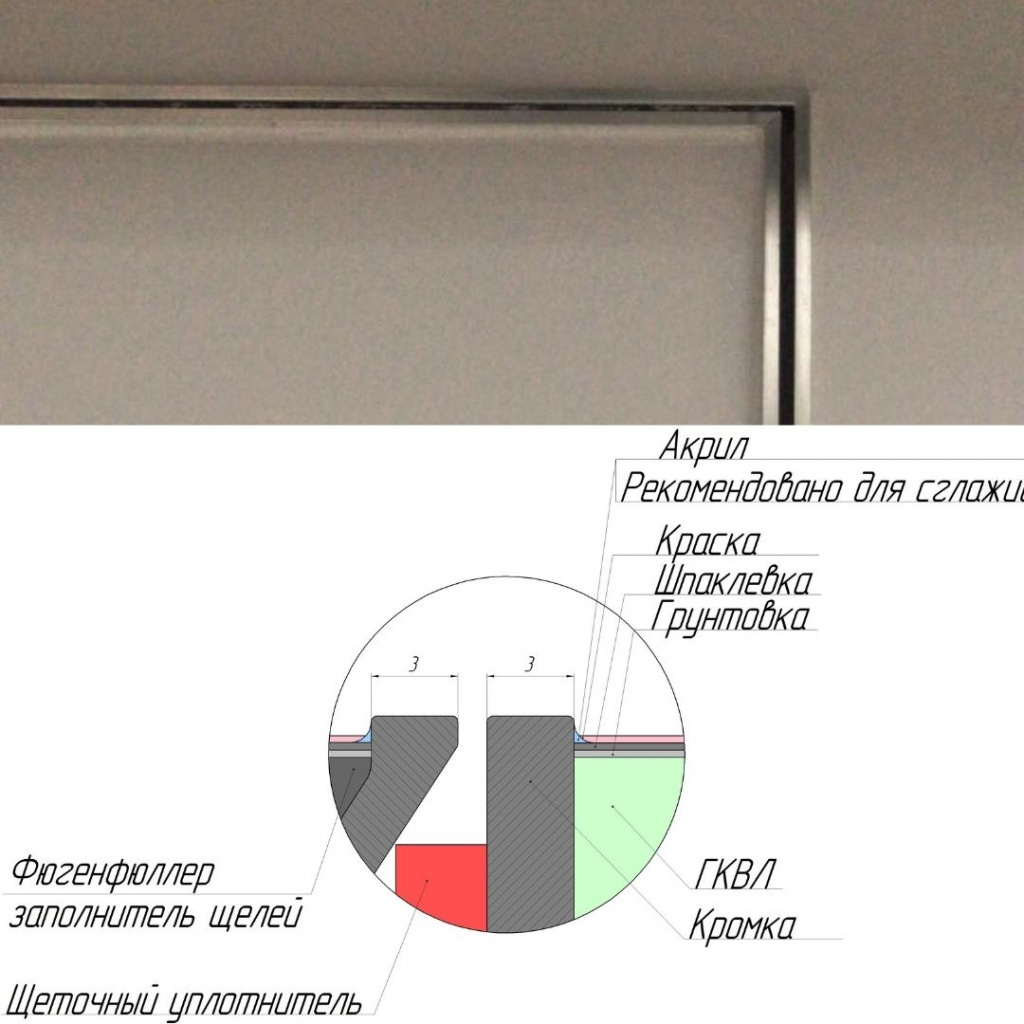 - с алюминиевой кромкой 3мм на створке и раме для защиты декоративного покрытия от задиров и отслоений,