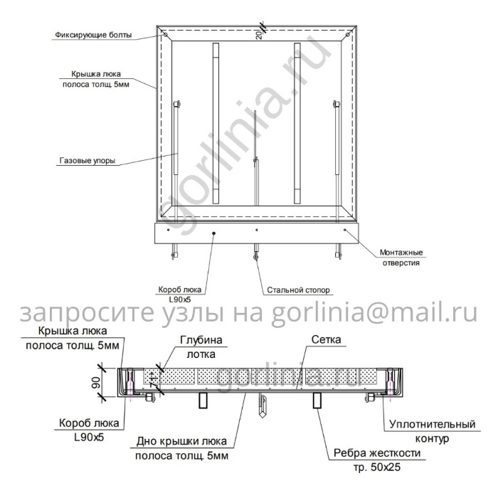Обечайка сварена из углового профиля горячего проката с толщиной стенки 5 мм; корыто - из листового проката 3 мм, усилено снизу обвязкой из балки 50х25. Сварка аргонно-дуговая сплошным проваром с присадками меди.