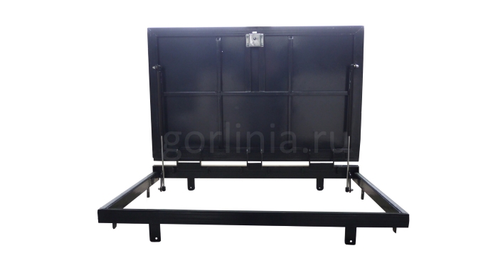 Рама без наличников выставляется в существующем отверстии 67*120 см с допусками, крепится в перекрытии через вертикальные пластины даже когда Ваш ремонт закончен и пол выложен керамогранитом или настелена ламинированная доска.